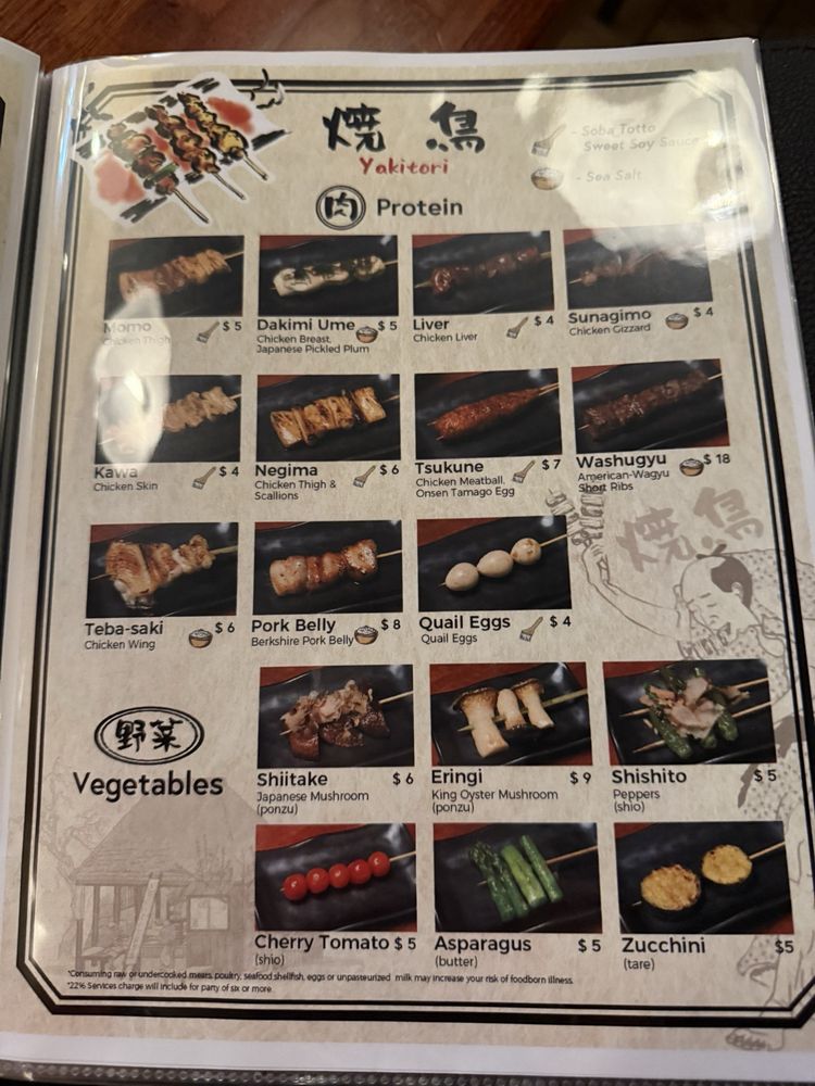 Okura, tempura crunch, bonito flake, wakame seaweed, scallion, vegetable pickles, Japanese mountain yam, qail egg, cucumber, grated daikon radish.